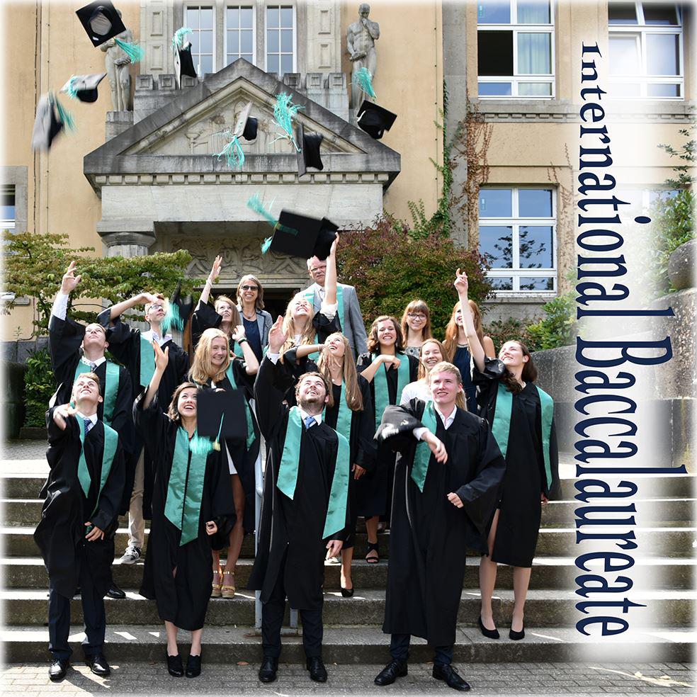 Abitur und IB Diploma geschafft! Mit Hut und Talar feierten die Schülerinnen und Schüler der Goetheschule Essen am Freitag in der Aula mit Musik und Gesang ihren Erfolg. Auch wenn nicht alle 22 IBler beim offiziellen Abschluss dabei sein konnten, war die Stimmung fröhlich, als sich die Absolventinnen und Absolventen vor der Schule zum traditionellen ‚Cap Toss‘ aufstellten.