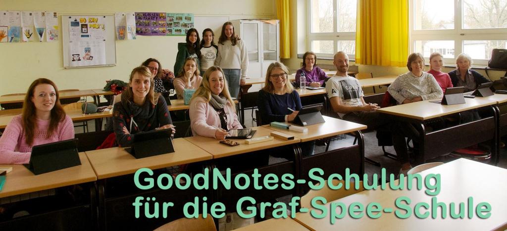 Nun freut es uns besonders, dass dieser Einsatz eine weitere Wertschätzung erfahren durfte: Im Austausch mit der Graf-Spee-Schule in Bredeney entwickelte sich der Wunsch, ebenfalls die Fortbildung in GoodNotes zu besuchen. So verbrachte das Lehrerkollegium der benachbarten Grundschule den Fortbildungstag dieser Woche an der Goetheschule, wo ein Team aus der neunten Jahrgangsstufe – mittlerweile Fortbildungsexpertinnen – wieder in GoodNotes schulen durfte. Wir danken der Graf-Spee-Schule für ihr Interesse und die Teilnahme und insbesondere aber auch Hilal, Johanna und Theresa für ihr bemerkenswertes Engagement!
