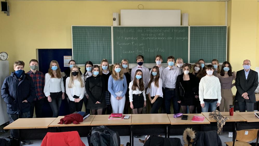 Anlässlich der Besprechung des HDI erstellte der Mathematik Grundkurs von Herrn Bartsch das traditionellen Kursfoto als Erinnerung an diese besondere Stunde.