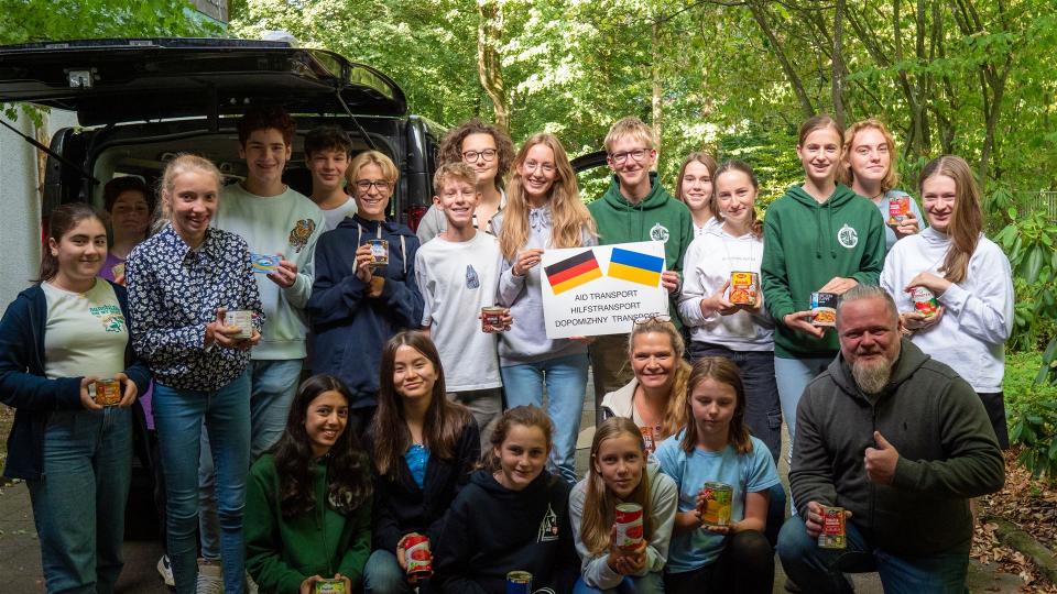In den vergangenen Tagen (29.08-01.09) waren alle Mitglieder der Schulgemeinschaft aufgerufen, hilfsbedürftige Menschen in der Ukraine zu unterstützen und dafür eine Konservendose mit Lebensmitteln zu spenden. Die Dosen wurden durch die Schülervertretung im Foyer der Turnhalle gesammelt und am Freitag, dem 01.09., an die Hilfsaktion „Lemberg wir kommen!“ übergeben, die die Dosen im Rahmen eines Hilfstransports in die Ukraine liefern wird.