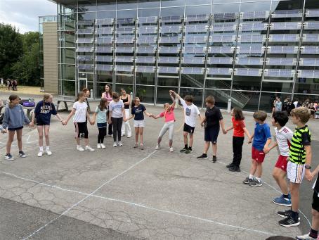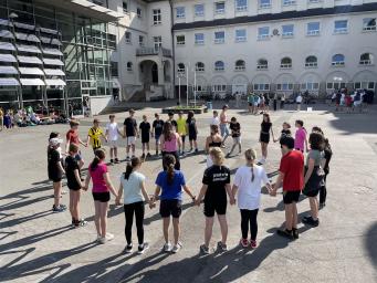 Die Goethelympics, das ist ein Wettbewerb, bei dem alle Klassen in verschiedenen Disziplinen wie z.B. Bobbycar-Race, Dreibeinlauf oder Schokokusswettessen gegeneinander antreten. Für jede Station wurden einige Schüler ausgewählt, die ihren Part erfolgreich meisterten. Sieger ist die Klasse, die die meisten Spiele gewonnen hat