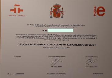 Das Diploma de Español - Nivel B2 (Intermedio) gilt als Nachweis für sehr gute allgemeine Kenntnisse der spanischen Sprache, die in den üblichen Alltagssituationen benötigt werden.