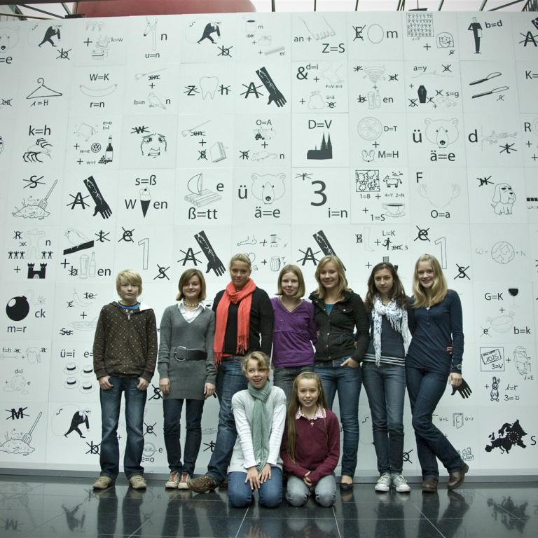 Schülerinnen und Schüler der Goetheschule klassifizierten sich nicht nur für den Wettbewerb: Der größte Rebus der Welt, sie haben den Wettbewerb sogar mit einem Rebus gewonnen. Da sich die Goetheschülerinnen und -schüler überaus zahlreich beteiligt, begeistert und besonders ideenreich gezeigt hatten, war am 24.10.2008 eine Teilnehmergruppe aus unterschiedlichen Jahrgangsstufen zur Präsentation im Foyer des Comin Start, dem Essener Kompetenz-Zentrum für Kommunikation und Informationstechnologie, geladen. In feierlichem Rahmen fand ein Creative Talk mit der Geschäftsführerin Nicole Marcellini, Michael Gehlert, EWG, und Kunstlehrerin Susanne Schnell für die Goetheschule und ein School Talk mit Isabell Strathmann, Louisa Wülfing und Nick Mäuser, stellvertretend für alle Goetheschülerinnen und - schüler, statt. Das anschließende gemeinsame Erraten des aus 88 Rebuswürfeln gebildeten Lösungssatzes leitete die Übergabe der Würfelwand an die Stadt Essen zur dauerhaften Ausstellung ein. Für die Goetheschülerinnen und -schüler waren allerdings viele der Rebusse leicht zu erraten, da sie selbst mit einer großen Anzahl davon zu dem erfolgreichen Weltrekord beigetragen hatten. Der Lösungssatz unseres Gewinnerrebus rückwärts, denn es soll ja nicht zu leicht sein: nhezdnesuatiewZ tdatstpuahrutluK