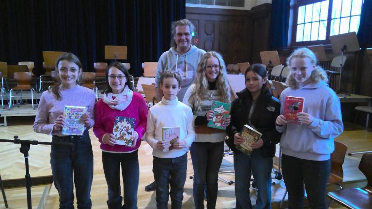 Des Weiteren wird die Ausscheidung zum jährlichen Vorlesewettbewerb im Rahmen der Leseförderung mit Hilfe des Leiters der Schülerbücherei, Herrn Herdemerten und der Bibliothek ausgerichtet und prämiert.